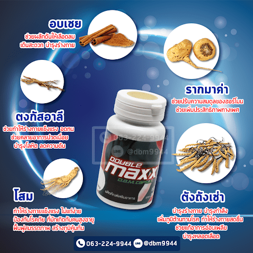 ดับเบิ้ลแม็ก ดับเบิ้ลแม็กพลัส ดับเบิ้ลแม็กพรีเมี่ยม สารสกัดจากสมุนไพรธรรมชาติ สรรพคุณเพื่อช่วยในการเสริมสมรรถภาพทางเพศ สำหรับท่านชายโดบเฉพาะครอบคลุมในทุกๆ ด้าน เช่น ภาวะมีบุตรยาก น้ำเชื้อปริมาณน้อย และไม่แข็งแรง อวัยวะเพศขนาดเล็กเกินมาตรฐานต้องการเพิ่มขนาด แก้ปํญหาอาการเสื่อมสมรรถภาพ น้องชายไม่แข็งตัว หรือแข็งตัวไม่เต็มที่ อาการหลั่งไว นกระจอกไม่ทันจิบน้ำ หรือแม้กระทั่งอาการที่เรียกว่าล่มปากอ่าว ซึ่งเป็นสื่งที่น่าอายสำหรับชายหลายๆ คน ทำให้ขาดความมั่นใจ และร่างกายไม่แข็งแรง อ่อนเพลีย อ่อนแรงสู้ศึกไม่ไหว หลากหลายอาการเหล่านี้ สมุนไพรดับเบิ้ลแม็กขอเป็นทางออกที่ดีที่สุดสำหรับทุกท่า่นที่ประสบปัญหา